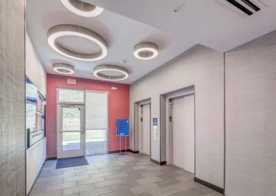 The hotel has two elevators near the center of the building. There are charging stations provided for electric vehicle charging.
